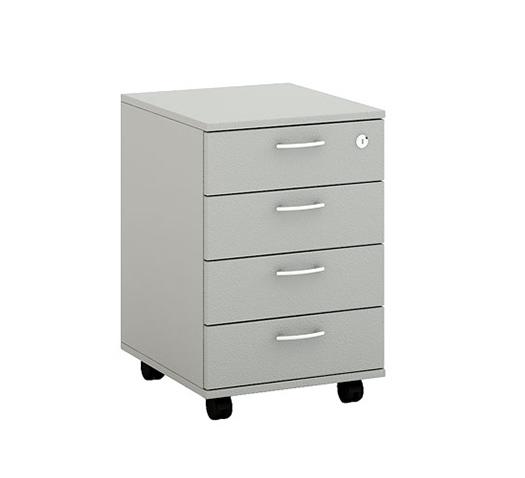Контейнерът за офис бюро е изработен от ПДЧ материал с меламиново покритие с дебелина на плоскостта от 18 мм. Разполага с четири чекмеджета със заключване и е подходящ е за съхранение на документи и лични вещи.