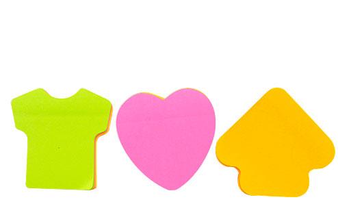 Самозалепващи листчета 76х76мм тениска неон са разнообразни по форма и цвят цветни кубчета. Подходящи са за многократно залепване и отлепване при отбелязване на страници на документи, а също така и за записване на важна информация.