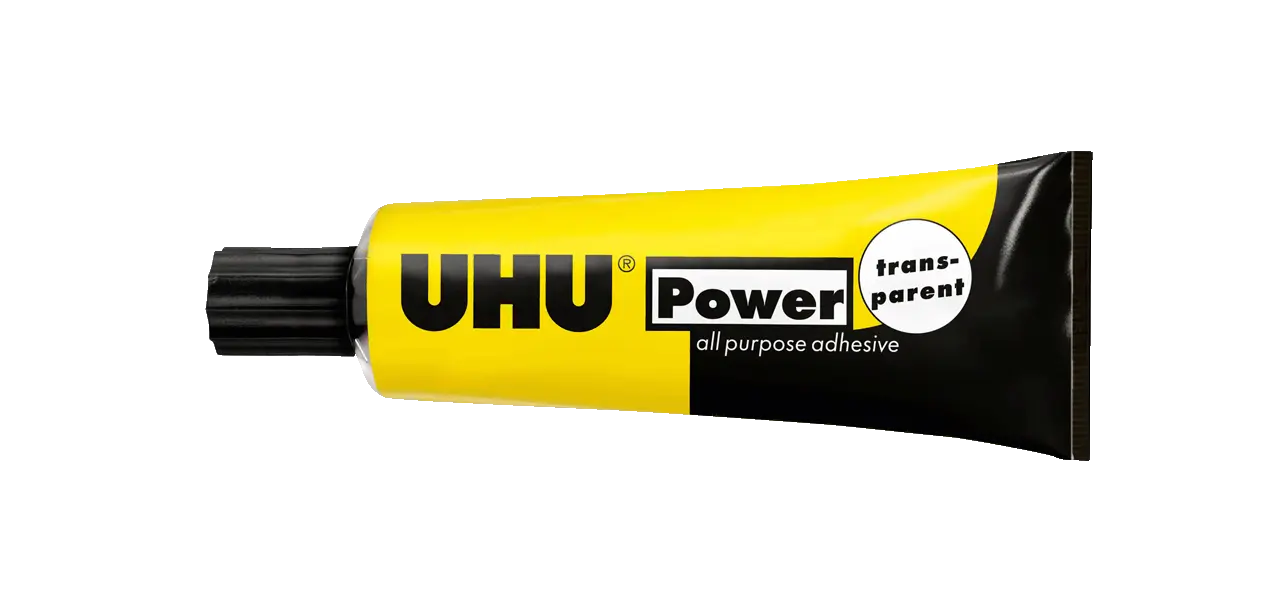 Универсалното лепило UHU Power 45 мл прозрачно е подходящо за лепене на хартия, кожа, корк, дърво, метал, порцелан, стъкло и пластмаса, като се измива при 40° вода с помощта на сапун.