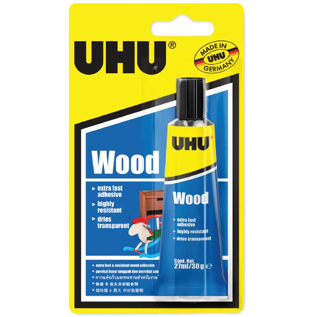 Лепилото UHU Express 30 гр е подходящо за лепене на всички видове дърво и плоски ламинати.