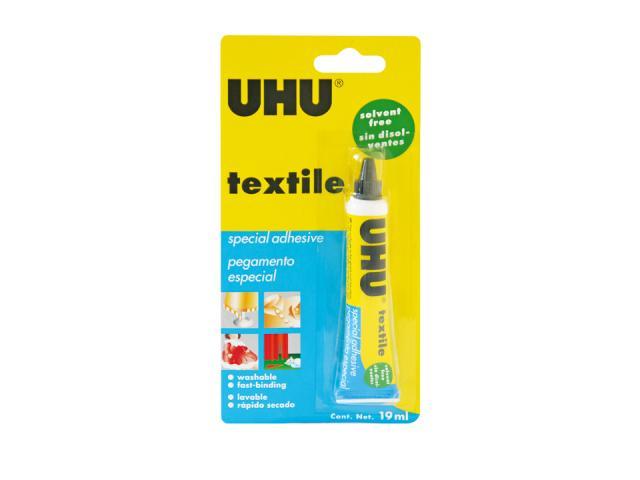 Лепилото за текстил UHU 19 мл безпроблемно залепва памук, лен, кече, плат към самия него или към кожа и дърво. Може да се пере до +90 градуса, да се глади и суши.