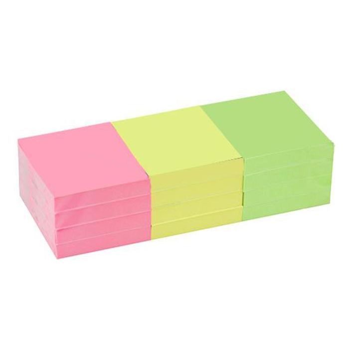 Самозалепващи листчета 50х40мм неон 12 бр 3 цвята са подходящи за многократно залепване и отлепване при отбелязване на страници на документи, а също така и за записване на важна информация.