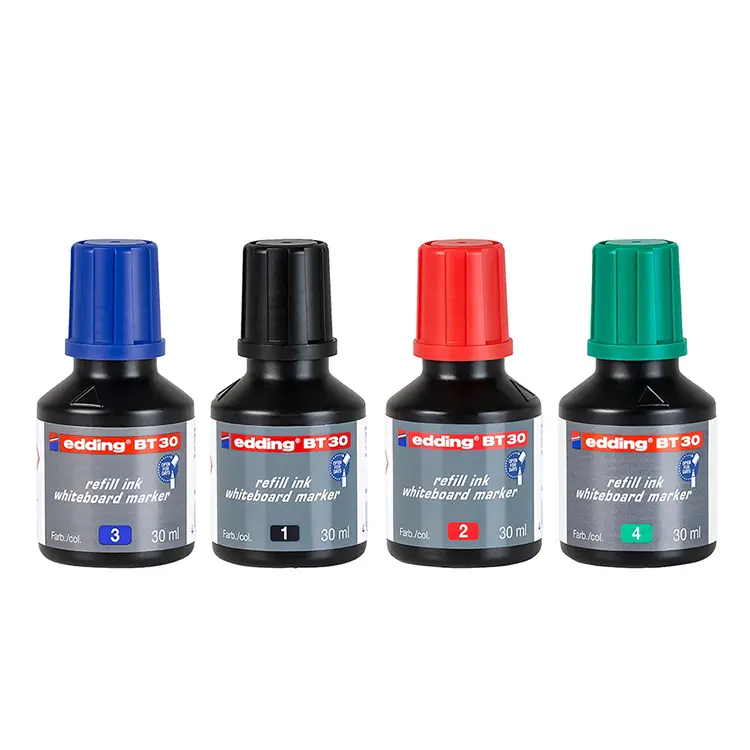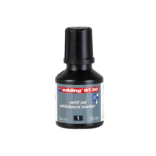 Мастило edding® BT 30 refill ink за бяла дъска е екосъобразно, бързосъхнещо мастило подходходящо за презареждане на маркери за бяла дъска edding 360 XL, 28, 29, 250, 361, 365.