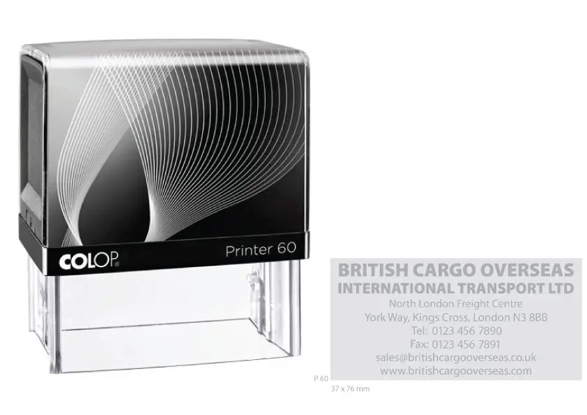 Печат с механизъм Colop Р60. Colop е световен лидер в изработката на механизми за автоматични печати. Изключително качествена изработка, която гарантира дълъг експлоатационен период. Механизъм произведен в Австрия.