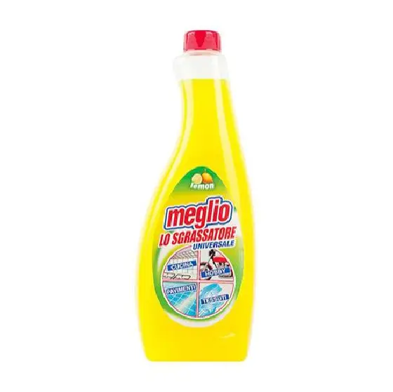 Обезмаслителят Meglio е универсален продукт за премахване на мазнини, упорити петна и почистване на много силно замърсени повърхности. Това е единствен по рода си концентриран почистващ препарат със силно обезмасляващо действие. Благодарение на уникалната си формула разгражда мазнините и мръсотията в дълбочина без да уврежда третираните повърхности.