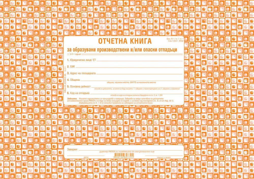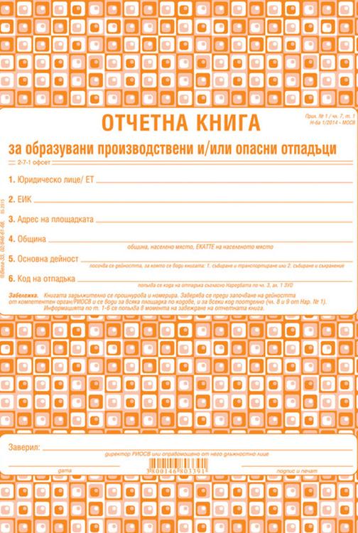 - Отчетна книга за образувани производствени и/или опасни отпадъци (По приложение №1 към чл.7, ал.1 на Наредба №1/2014 на МОСВ)