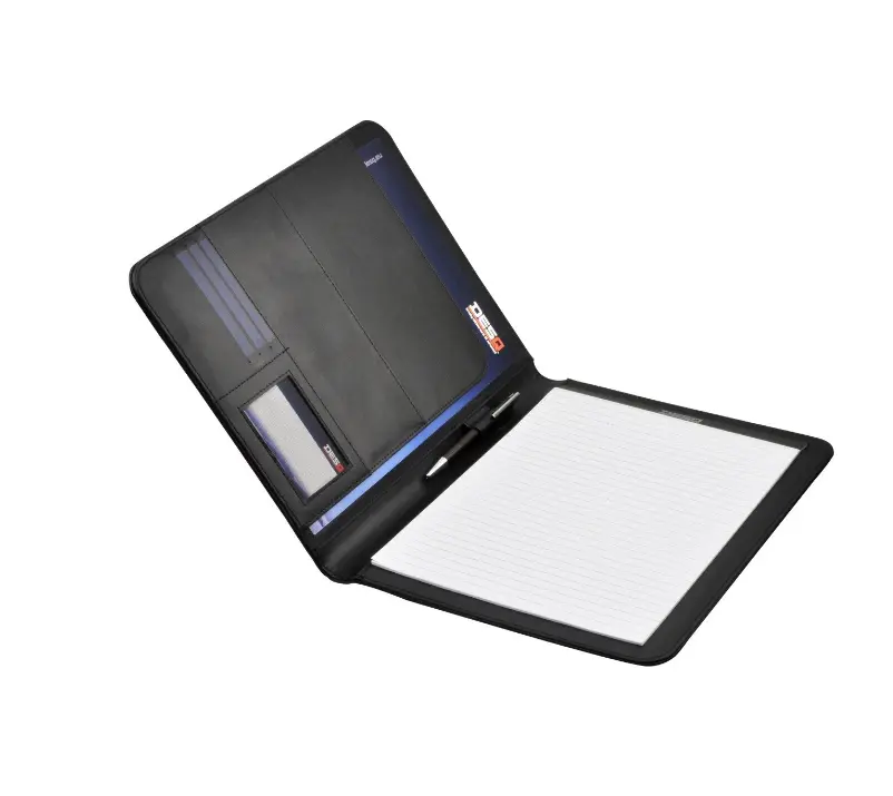 Папката Desq конферентна притежава бележник с бели листа и вътрешен джоб за химикалка, кредитни карти и визитки.