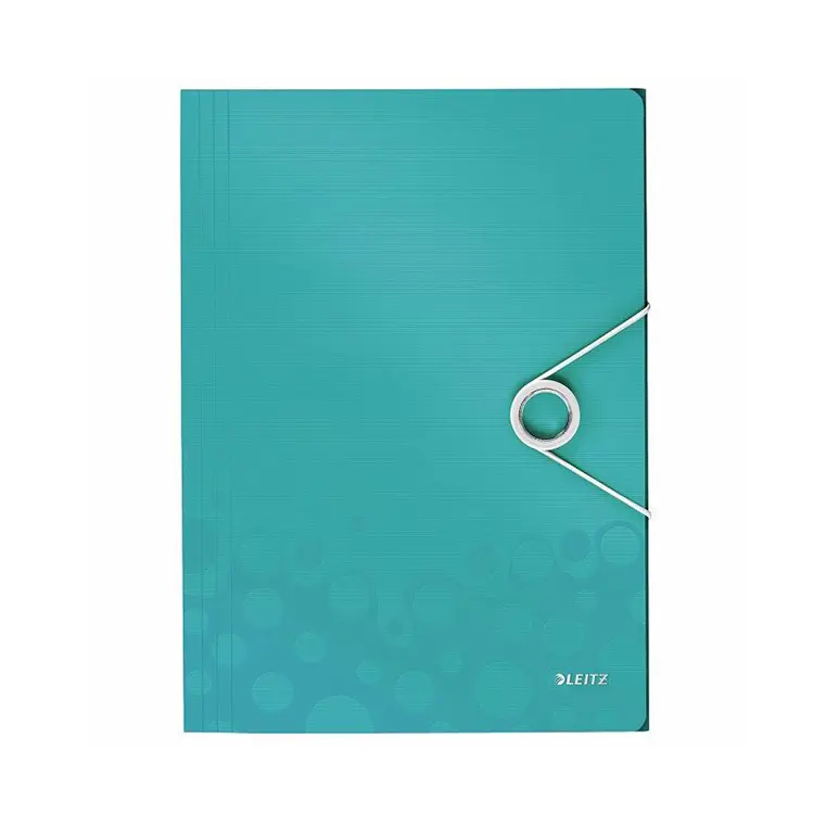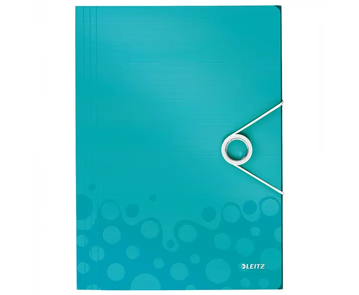 Папката с ластик и 3 капака Leitz WOW тюркоаз е луксозна папка с преливащи цветове, която е подходяща за съхранение и архивиране на документи с размер А4.