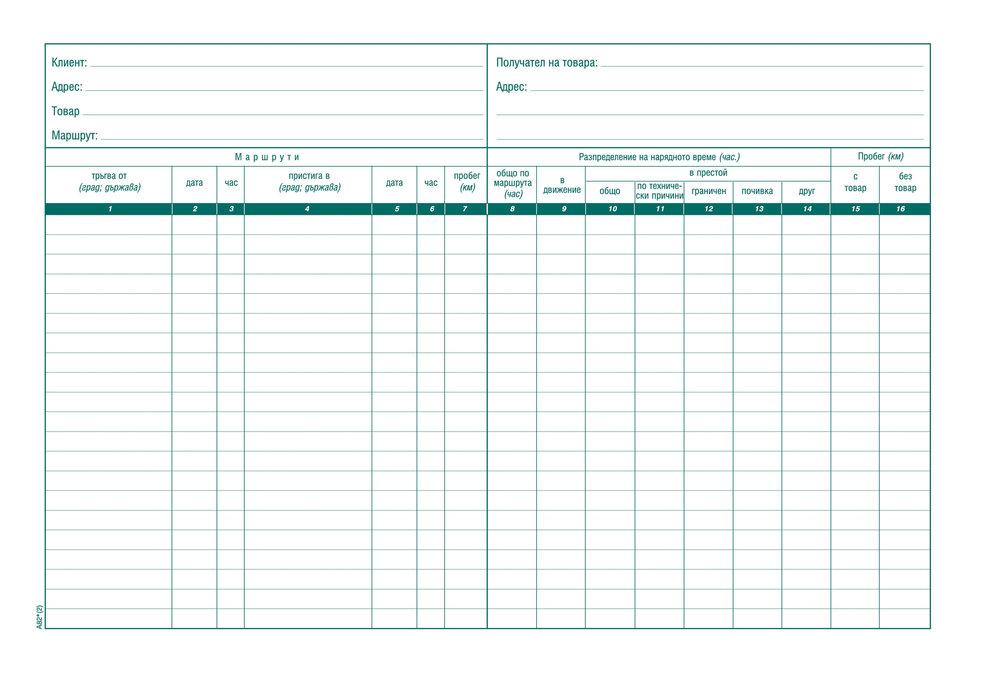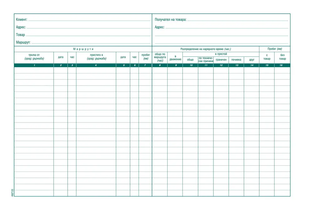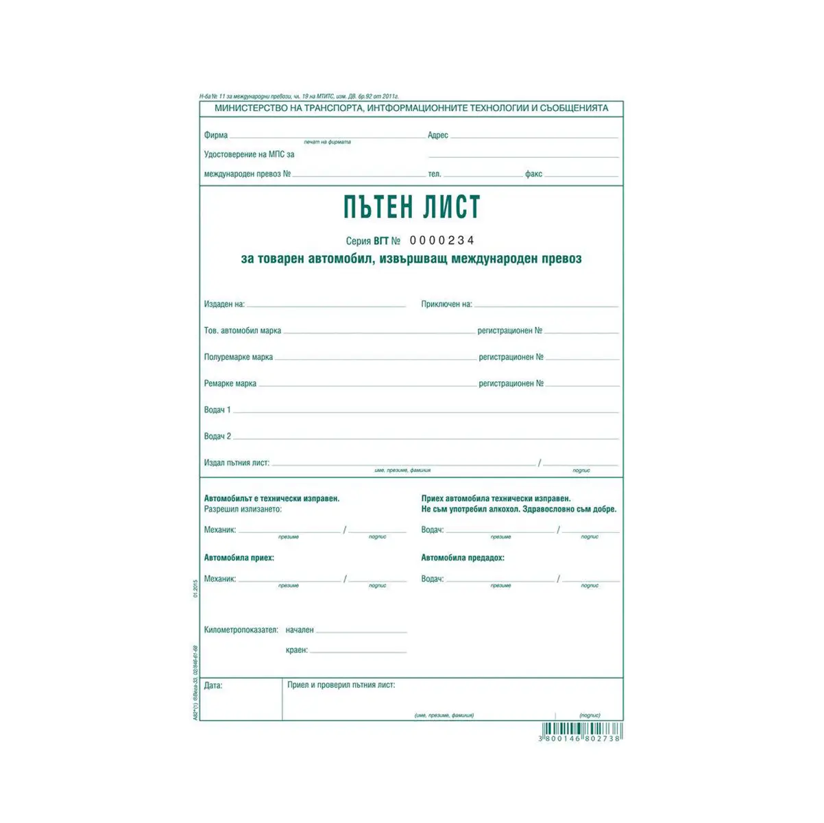 - Пътен лист за товарен автомобил за международен превоз с индивидуален номер на всеки лист