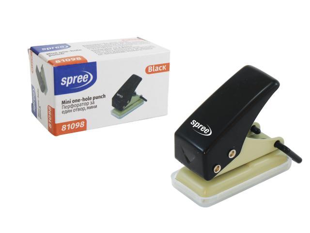 Перфоратор мини Spree с една дупка 10 л разполага с подвижен ограничител за различните размери според формата на документа, който искате да перфорирате.
