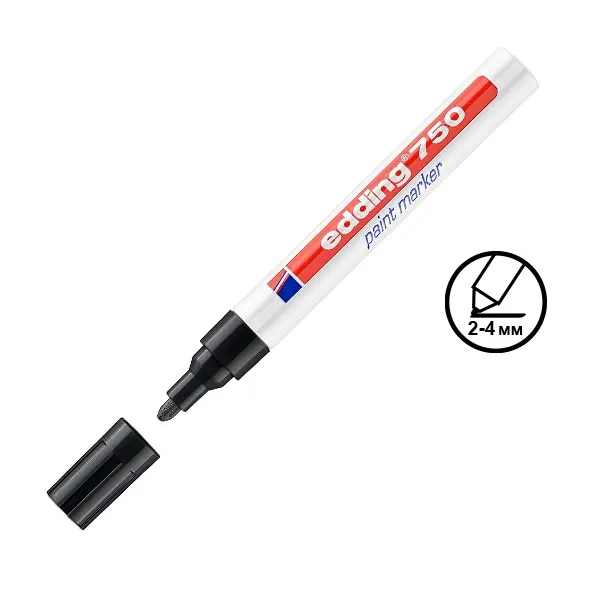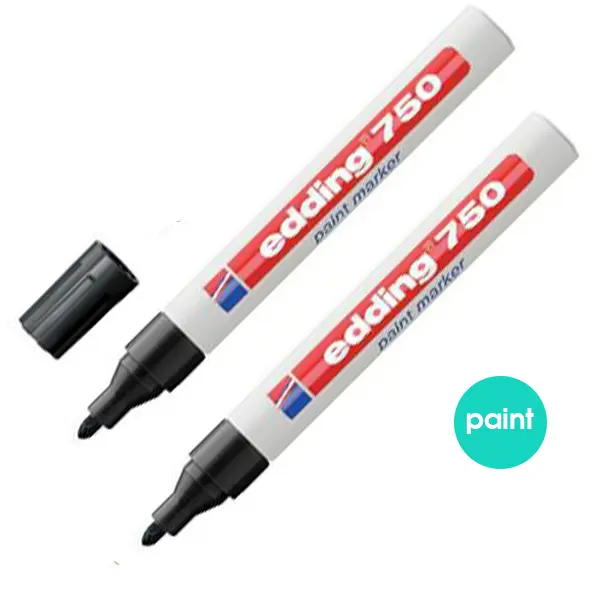Перманентният лаков маркер Edding 750 черен е подходящ за маркиране, рисуване и декорация върху гладки, порести, светли и тъмни прозрачни повърхности като стъкло, пластмаса, дърво, метал и други.