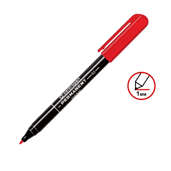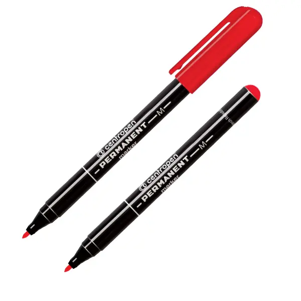 Перманентният маркер Centropen 2846 M червен е подходящ за нанасяне върху всякакви повърхности. Мастилото му е устойчиво и бързосъхнещо.