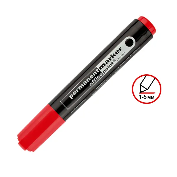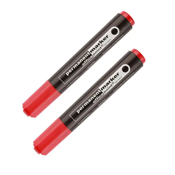 Перманентният маркер Office Point червен е подходящ за нанасяне върху различни гладки повърхности като хартия, картон, пластмаса, стъкло и други.