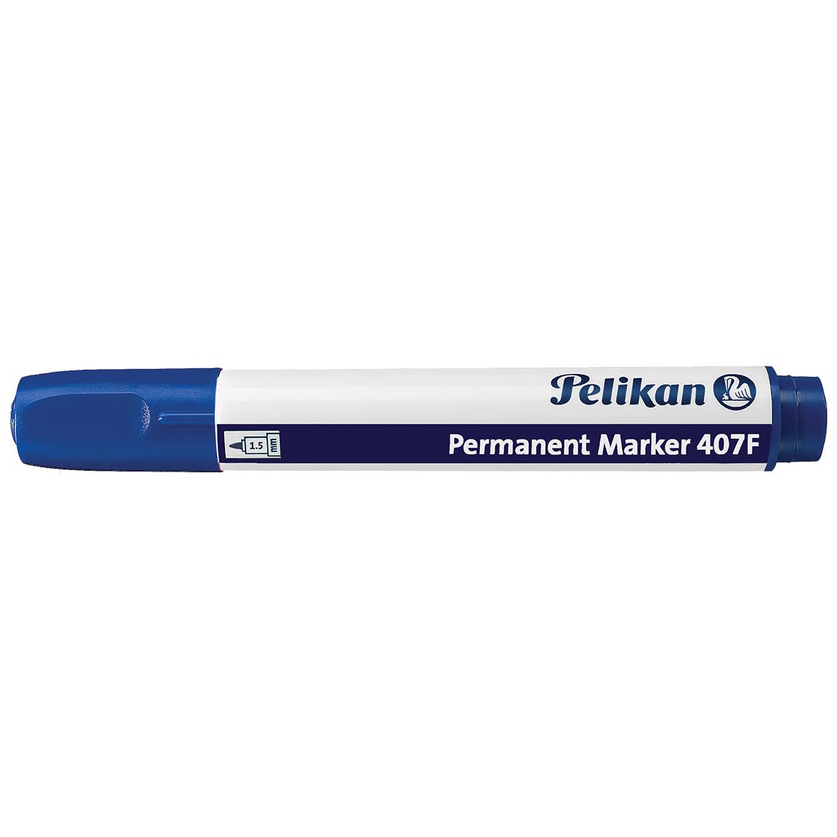 Перманентният маркер Pelikan 407F син е подходящ за писане, рисуване и маркиране върху метал, стъкло, пластмаса и други. Pelikan 407F е нетоксичен и водоустойчив.