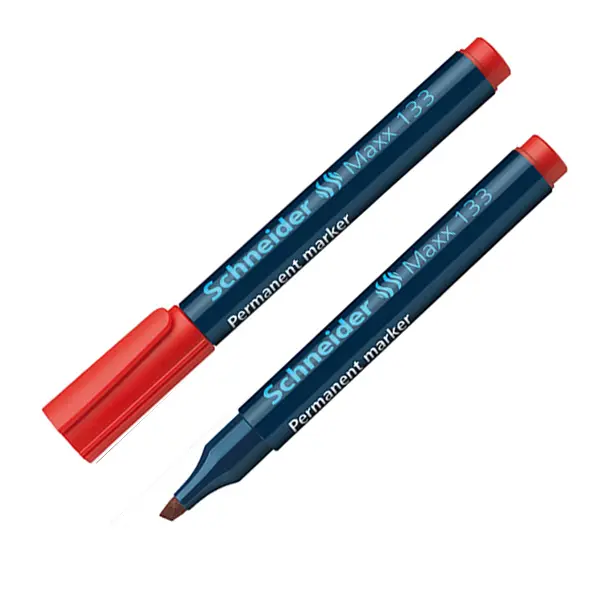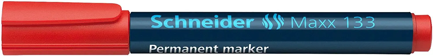 Перманентният маркер Schneider Maxx 133 червен е подходящ за писане върху картон, хартия, пластмаса, стъкло, метал и други. Устойчив е на светлина и вода.