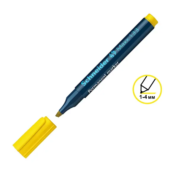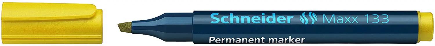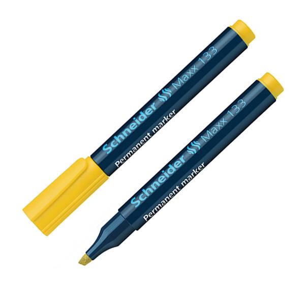 Перманентният маркер Schneider Maxx 133 жълт е подходящ за писане върху картон, хартия, пластмаса, стъкло, метал и други. Устойчив е на светлина и вода.