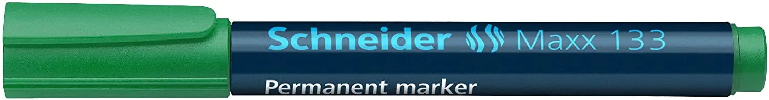 Перманентният маркер Schneider Maxx 133 зелен е подходящ за писане върху картон, хартия, пластмаса, стъкло, метал и други. Устойчив е на светлина и вода.