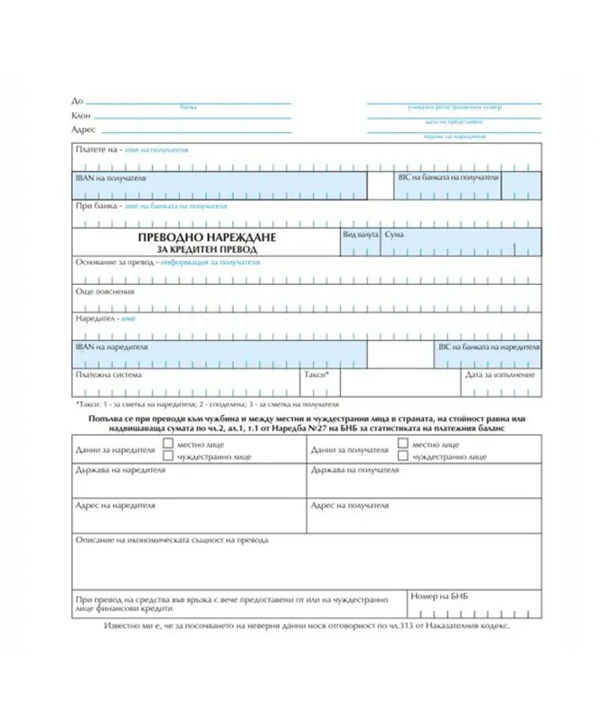 - Платежно нареждане за кредитен превод от химизирана (самокопирна) хартия
