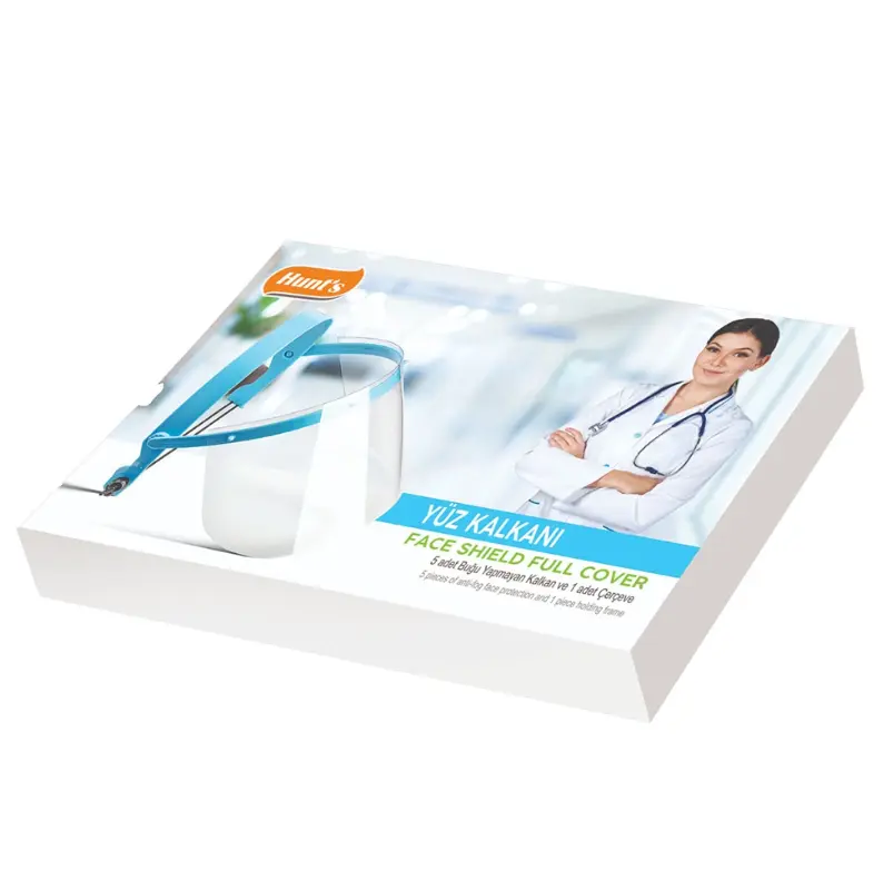 Защитният шлем за лице PVC с 5 резервни екрана предоставя оптимално покритие на носа, устата и очите едновременно. Шлемът разполага с удобен дунапрен и подвижен ластик, което го прави удобен и подходящ за всекиго. Почиства се лесно с помощта на мокра кърпа, напоена със спирт или дезинфектант. Не натоварва и деформира зрението, тъй като защитният екран разполага с висока пропускливост за светлина.