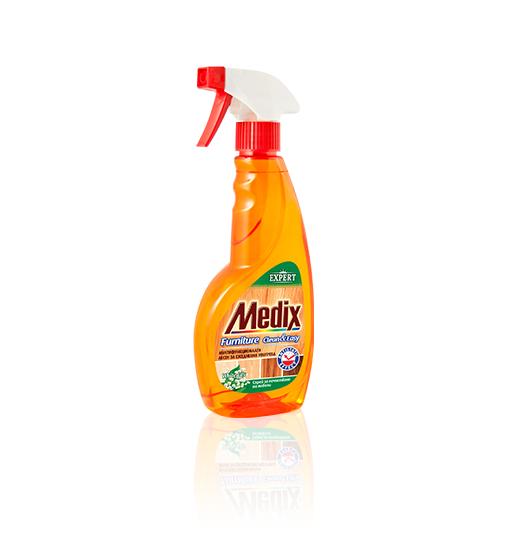 Препаратът за мебели и дърво Medix помпа 350 мл е мултифункционален и удобен спрей за ежедневна употреба. С антистатичен ефект, който предпазва от бързото натрупване на прах. Ефикасно почиства без следи от замазване и не оставя лепкаво усещане. Осигурява експертна грижа, като прави мебелите блестящи от чистота и придава дълготраен свеж аромат на цветя.