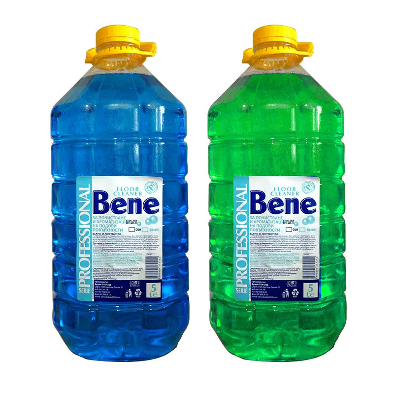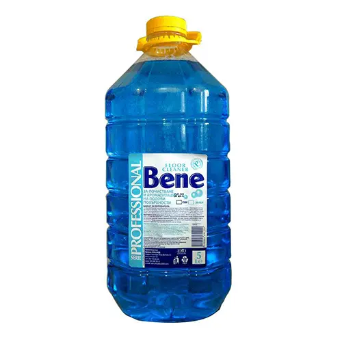 Препаратът за под Бене 5 л е течен нископенещ се препарат за ежедневно почистване на теракот, мрамор, ламинирани паркети, твърди подови настилки, дограми, кухненски плотове, метални и дървени повърхности. Препаратът създава защитен филм, който предпазва твърдите повърхности от надраскване, без да оставя следи по пода. След употреба помещенията са чисти, с приятен и дълготраен аромат.
