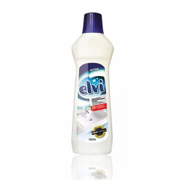 Препаратът за санитарен фаянс Elvi 500 мл е ароматизиран гел за основно и регулярно почистване на санитарен фаянс. Kомбинацията от няколко вида активни вещества и киселина мощно и бързо почистват отлагания от всякакъв характер, включително от варовик и калциев карбонат (бели петна). Гелната форма на препарата прилепва добре към повърхността и не му позволява да изсъхне, поддържайки го активен в нужното време за отстраняване на най-упоритите замърсявания. След употреба фаянсовите и хромирани повърхности възвръщат своя естествен блясък. Не съдържа хлор.