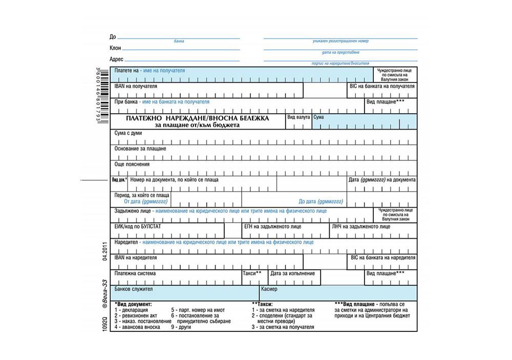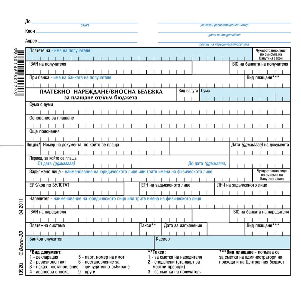- Платежно нареждане / вносна бележка за плащане от/към бюджета