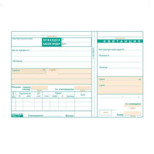 - Приходен касов ордер с квитанция от офсетова хартия