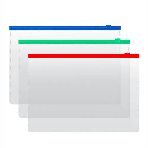 Папката с цветен цип А5 прозрачна предпазва от влага, прах и замърсявания. Притежава предназначен джоб за визитки.