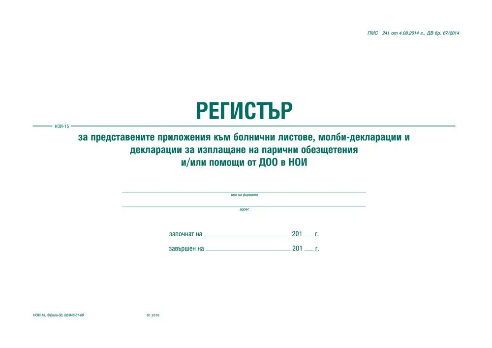 - Регистър на представените приложения към болнични листа и декларации в НОИ