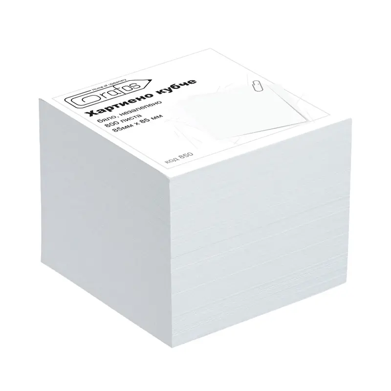 Бяло кубче 85х85 мм 750 л резерва са класически бели листчета, подходящи за записване на важна информация.