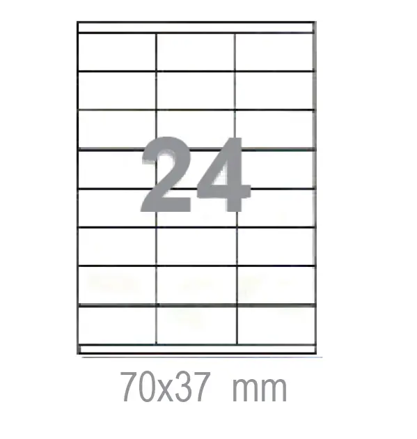 Самозалепващи етикети 70х37 24 бр. са произведени от самозалепваща хартия за многофункционална употреба. Подходящи са за работа с копирни машини, лазерни и мастиленоструйни принтери.