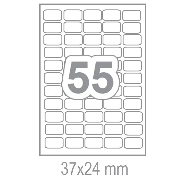 Самозалепващи етикети 37x24 55 бр са произведени от самозалепваща хартия за многофункционална употреба. Подходящи са за работа с копирни машини, лазерни и мастиленоструйни принтери.