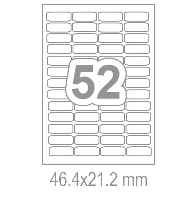 Самозалепващи етикети 46.4x21.2 52 бр. са произведени от самозалепваща хартия за многофункционална употреба. Подходящи са за работа с копирни машини, лазерни и мастиленоструйни принтери.
