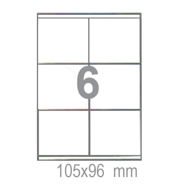 Самозалепващи етикети 105х96 6 бр. са произведени от самозалепваща хартия за многофункционална употреба. Подходящи са за работа с копирни машини, лазерни и мастиленоструйни принтери.