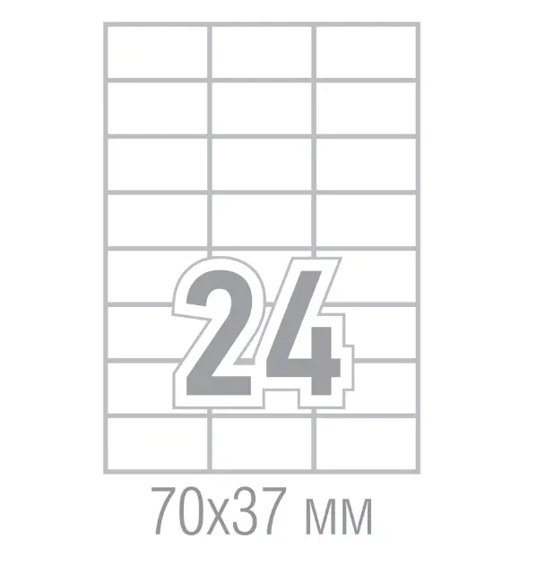 Самозалепващи етикети 70x37 24 бр. са произведени от самозалепваща хартия за многофункционална употреба. Подходящи са за работа с копирни машини, лазерни и мастиленоструйни принтери.