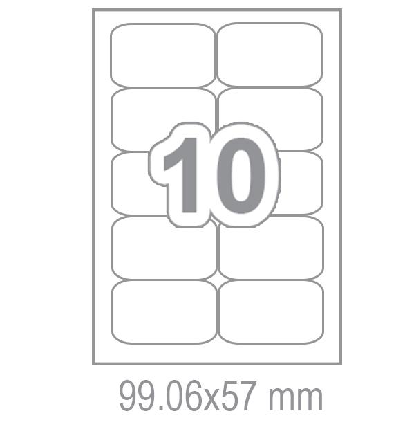 Самозалепващи етикети 99.06x57 10 бр. са произведени от самозалепваща хартия за многофункционална употреба. Подходящи са за работа с копирни машини, лазерни и мастиленоструйни принтери.