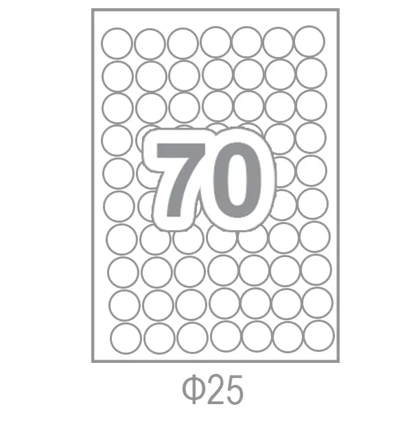 Самозалепващи етикети Ф25 70 бр. са произведени от самозалепваща хартия за многофункционална употреба. Подходящи са за работа с копирни машини, лазерни и мастиленоструйни принтери.