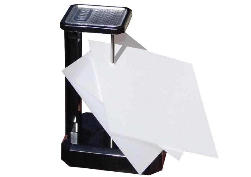 Шишът за документи е пригоден за пробиване на листа и подпомага дискретното подреждане на персонални бележки.