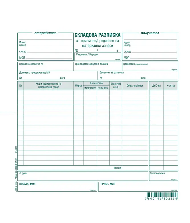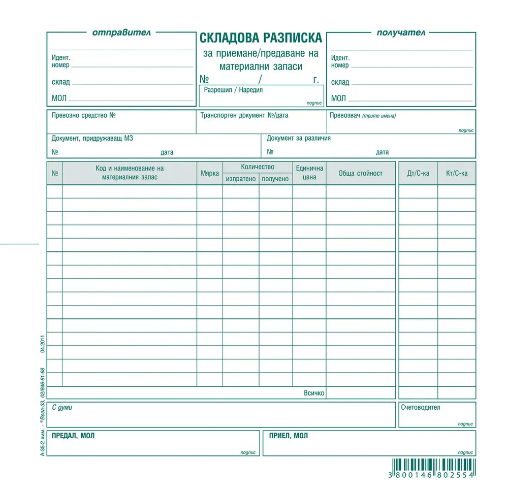 - Блок от химизирана (самокопирна) хартия под формата на лепен кочан