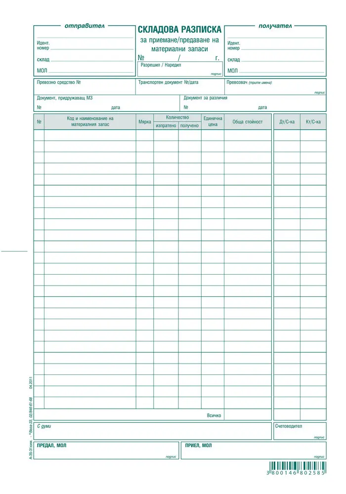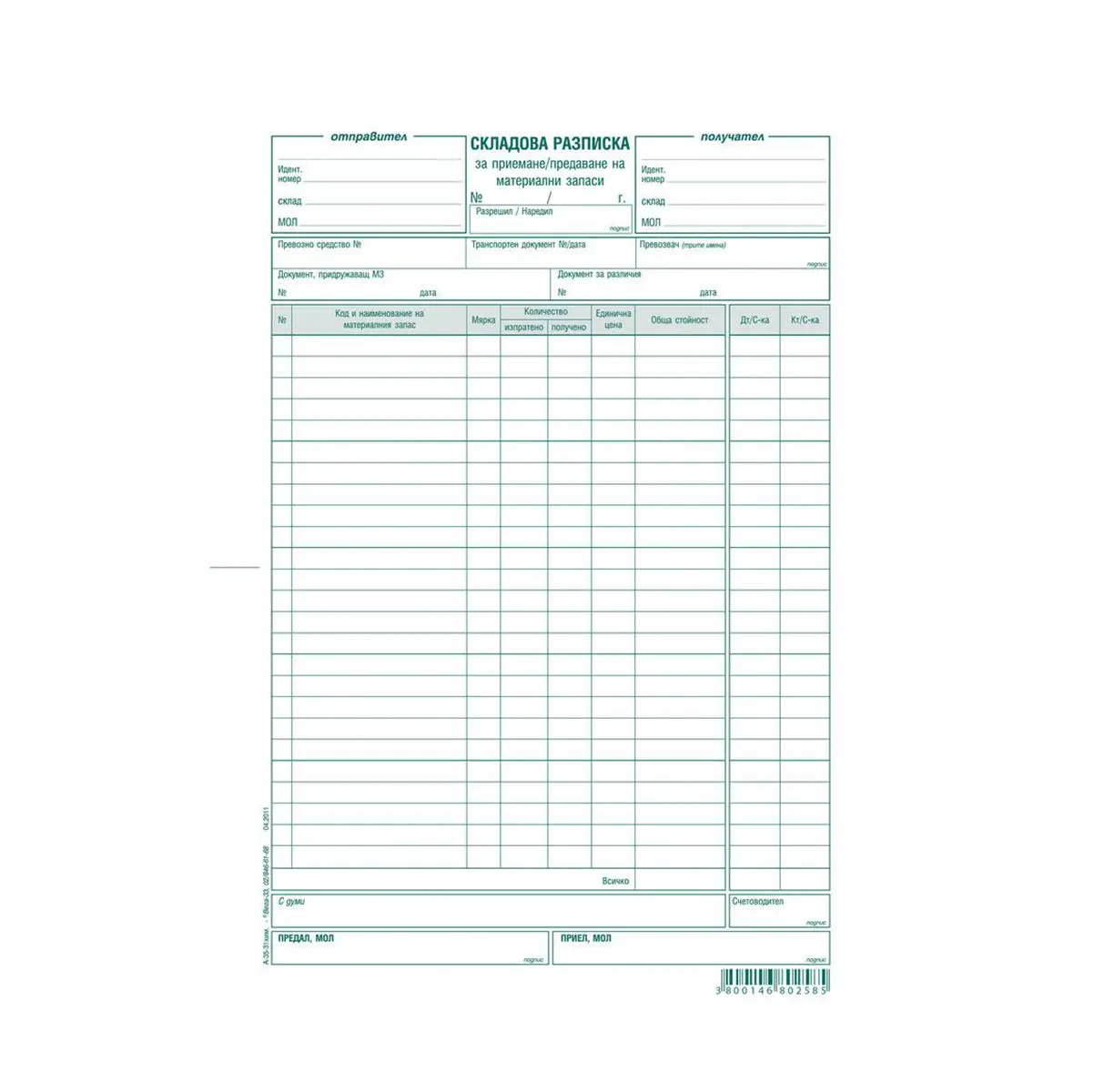 - Блок от химизирана (самокопирна) хартия под формата на лепен кочан