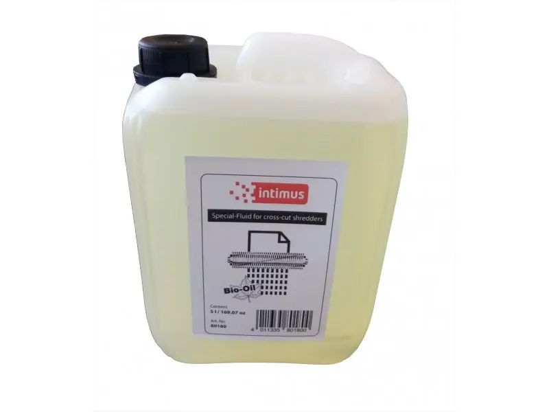 Смазващият флуид Intimus 5000 мл e изключително важен при поддържката на вашия шредер във върхова форма и смазването на режещите му валове. Поставяйки от специално създадения смазващ материал върху ножовете, ще удължите живота на шредера, а също така и ще спестите време при унищожаването. Това е особено важно при всички cross-cut шредери.