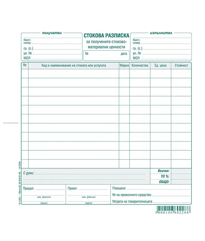 - Блок от химизирана (самокопирна) хартия под формата на лепен кочан