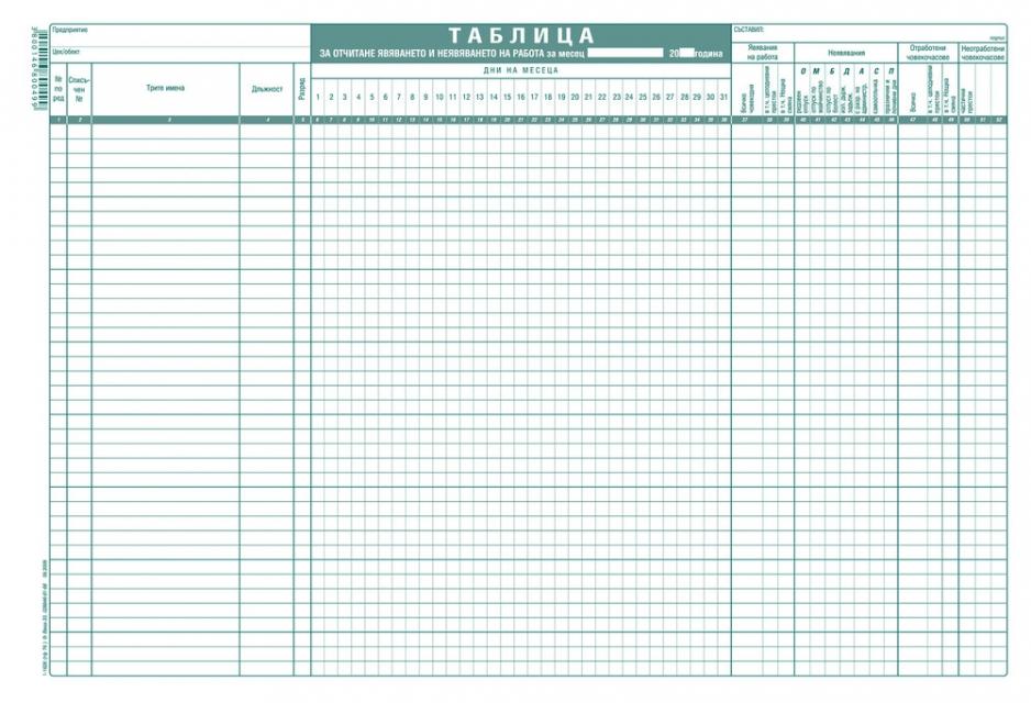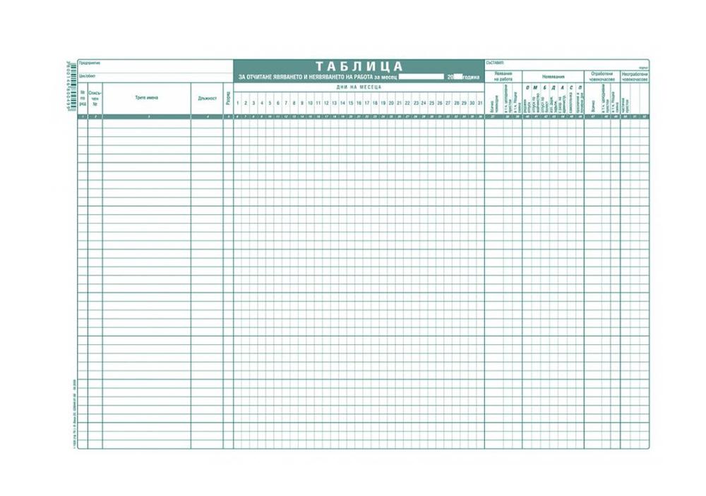 - Таблица за отчитане явяването и неявяването на работа