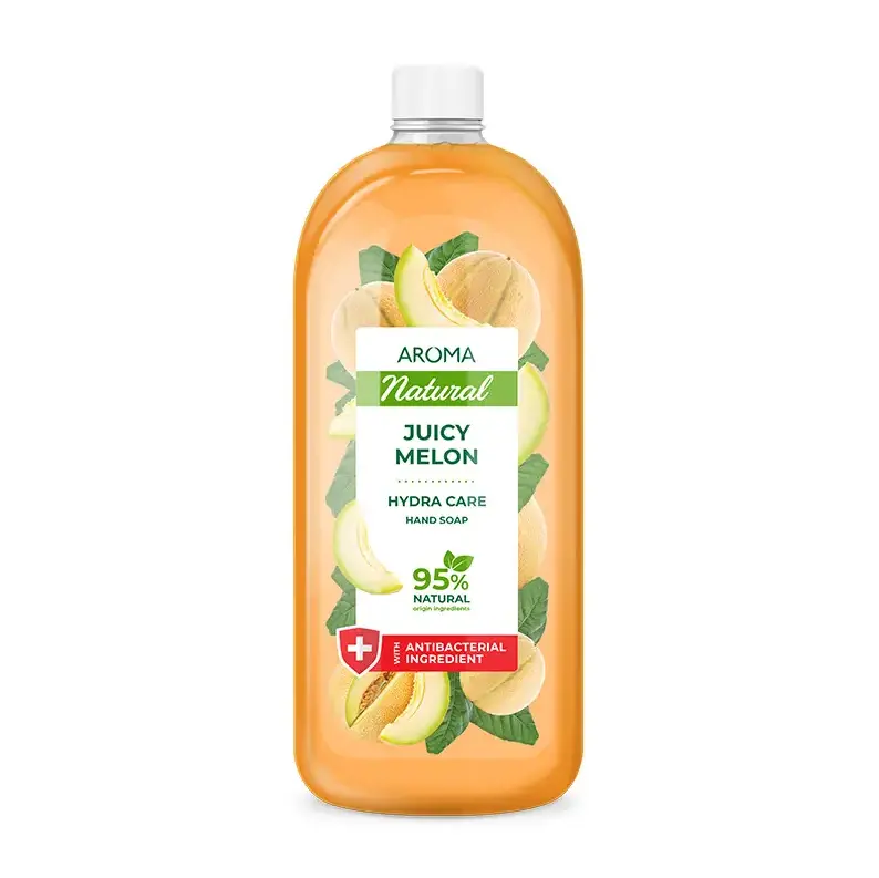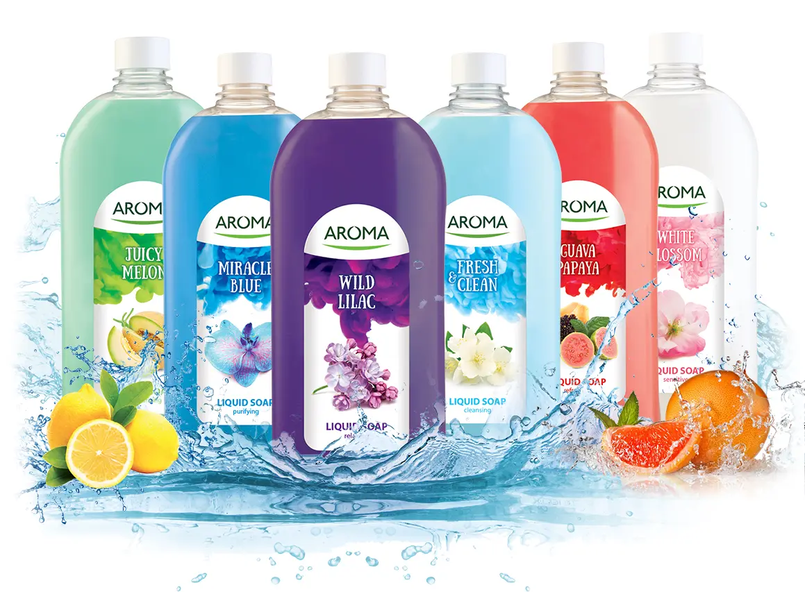 Течният сапун Арома 900 мл е с приятен аромат, който оставя усещане за чистота и свежест след всяко измиване на ръцете. Формула с меко действие, която не изсушава кожата и я прави мека и нежна. Допълнително обогатен със специфични съставки, осигуряващи грижа за кожата. Нежен и деликатен аромат, които остава и след измиване и придава на кожата приятно ухание. Допълнително обогатен с глицерин, който овлажнява и омекотява кожата и я прави мека и нежна.