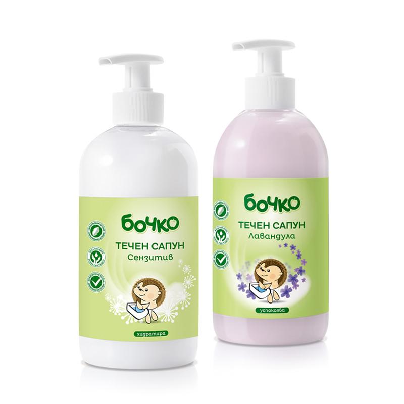 Нежната формула на течен сапун Бочко почиства кожата и я оставя мека и защитена благодарение на вложеният екстракт от алое вера. С активна измиваща формула и с добавен глицерин, кожата остава чиста, мека и запазва своя воден баланс. Със специално подбран хипоалергенен аромат и с биоразградими активни съставки. Подходящ е за често измиване на чувствителна и склонна към алергии кожа.