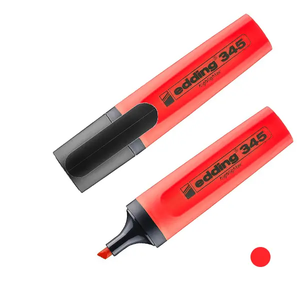 Текст маркер Edding Е-345 червен е надежден неонов текст маркер, тъй като издържа дълго време без капачка. Удобен е за презареждане с мастило HTK-25 и е подходящ за нанасяне върху всички видове хартия и картон.