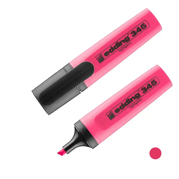 Текст маркер Edding Е-345 розов е надежден неонов текст маркер, тъй като издържа дълго време без капачка. Удобен е за презареждане с мастило HTK-25 и е подходящ за нанасяне върху всички видове хартия и картон.