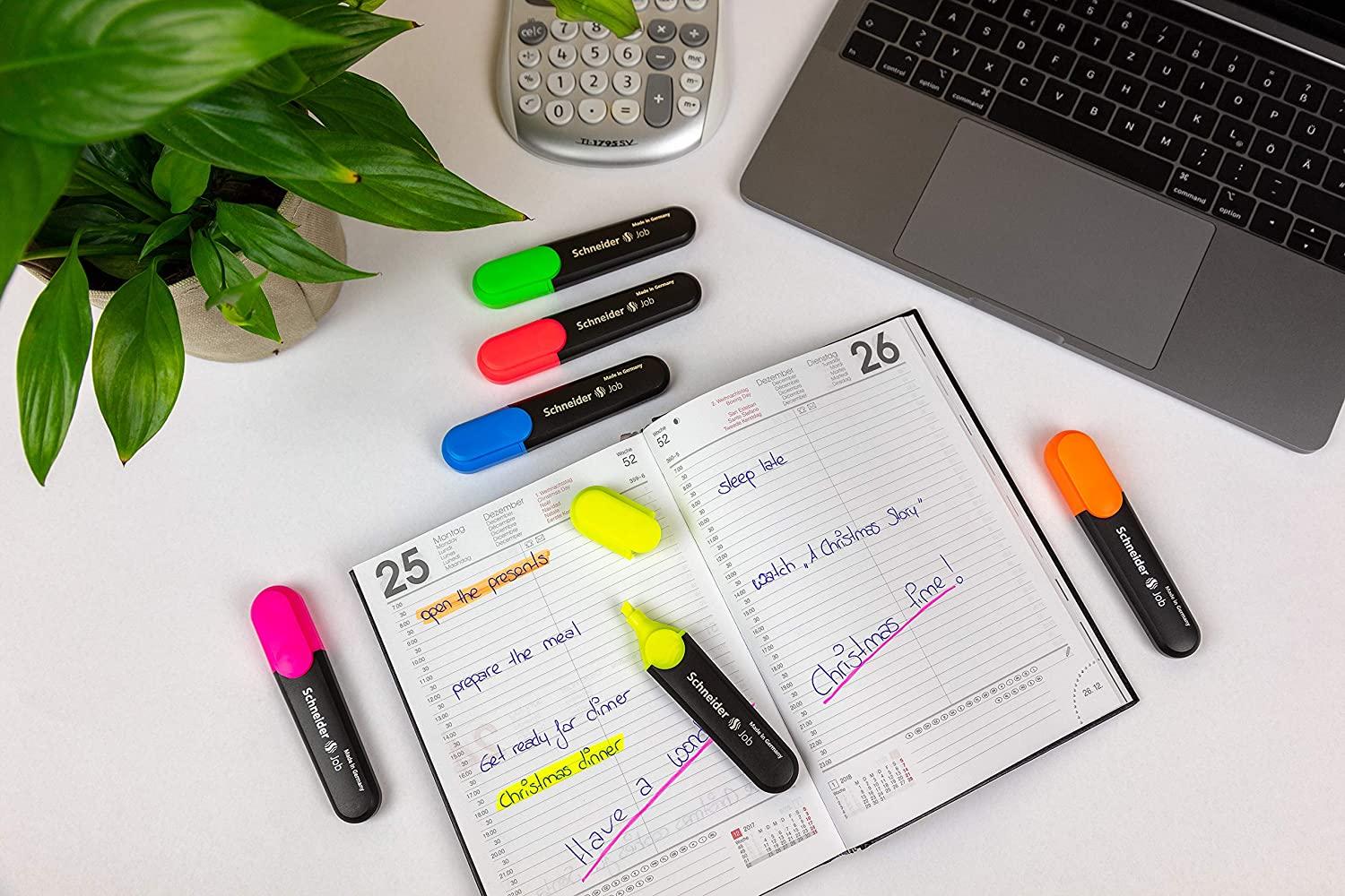 Текст маркер Schneider Job червен е висококачествен тескт маркер с изключително наситено и издържливо мастило в неонови цветове. Подходящ е за подчертаване на важна информация и по-лесното й намиране в текста. Удобен е за нанасяне върху стандартна, копирна и факс хартия.