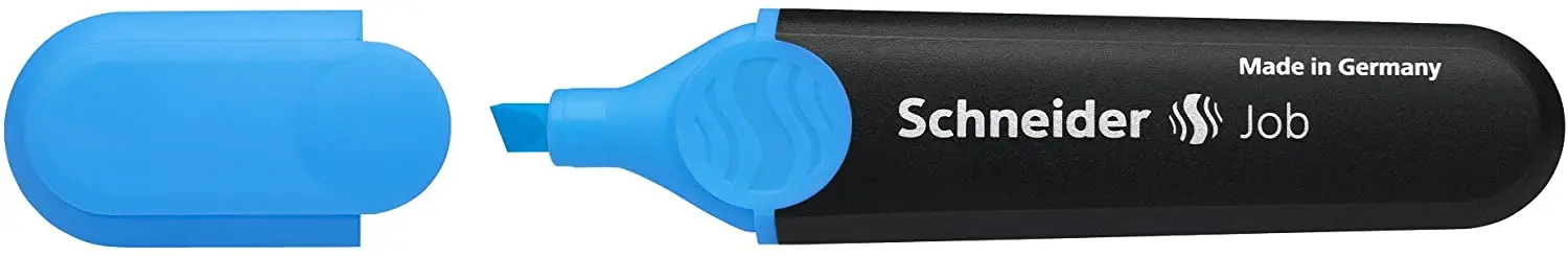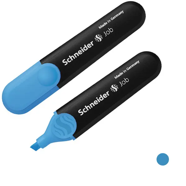 Текст маркер Schneider Job син е висококачествен тескт маркер с изключително наситено и издържливо мастило в неонови цветове. Подходящ е за подчертаване на важна информация и по-лесното й намиране в текста. Удобен е за нанасяне върху стандартна, копирна и факс хартия.